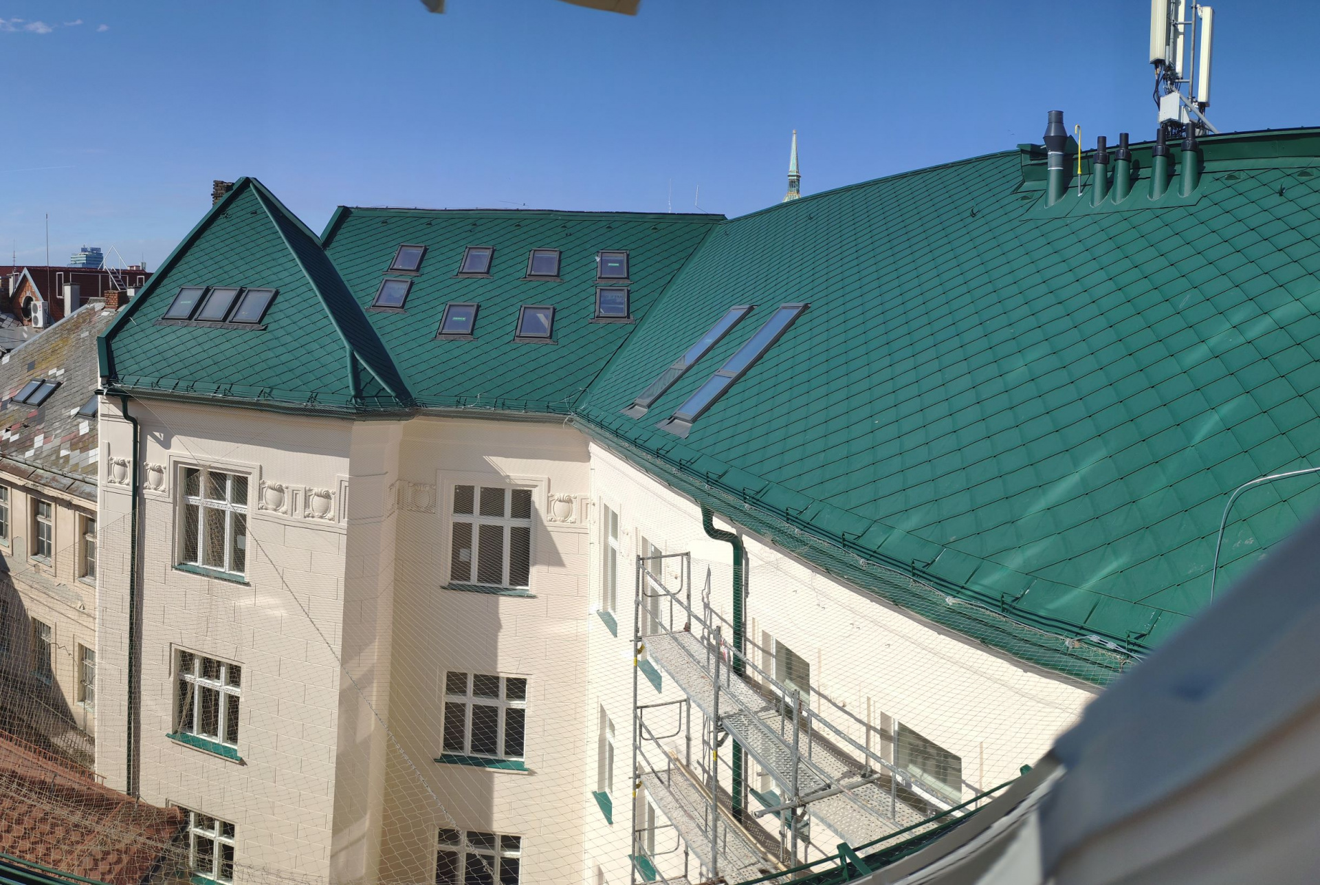V koordinácii s požiadavkami pamiatkového úradu sa podarilo navrhnúť strešnú krajinu v citlivom duchu voči okolitému vizuálnemu kontextu a zároveň splniť dnešné normové požiadavky na plnohodnotné využívanie pre administratívne účely.