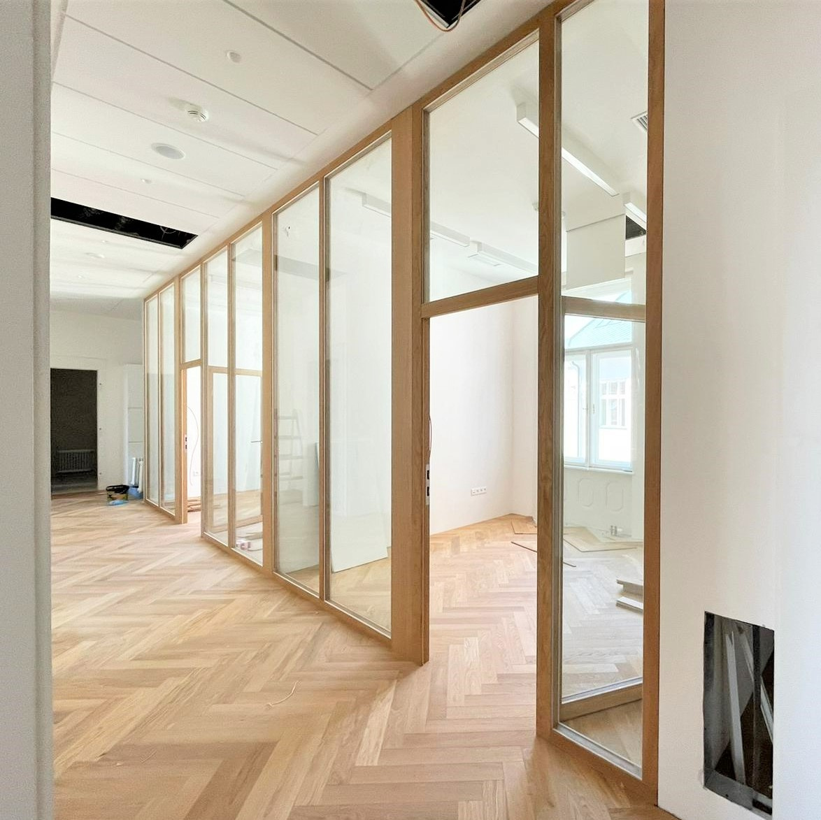 Návrhom interiéru a obnovy interiérových dobových prvkov či ich zakomponovaním do obnovených častí kancelárskych priestorov sme reflektovali na materiálové a farebné stvárnenie priečelia budovy. Našou úlohou bolo zmapovať všetky hodnotné prvky a pripraviť ich tak pre budúce reštaurovanie alebo pre vyhotovenie verných kópií s použitím zachovalých častí, v súčinnosti s pamiatkovým úradom.