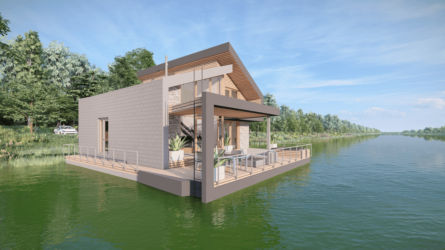 Zadaním bolo navrhnúť pre dom pre manželský pár s prídavnými priestormi pre príležitostné užívanie rodinu alebo známych. Podmienkou bola orientácia spálne a obývacej izby k ramenu Dunaja, a orientácia kúpeľne, technickej miestnosti a kuchyne smerom k brehu.