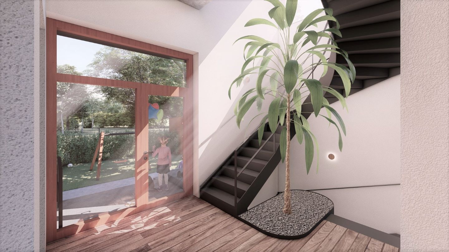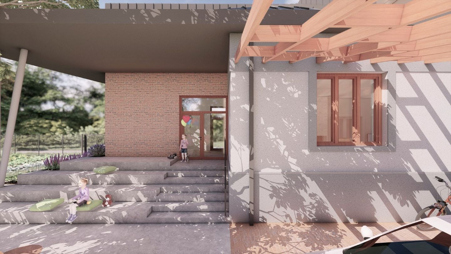 Prístavbou sa vytvorila prirodzene presvetlená vstupná predsieň a nad ňou príjemný spoločenský priestor s veľkou presklenou stenou s výhľadom na lesy Záhoria.