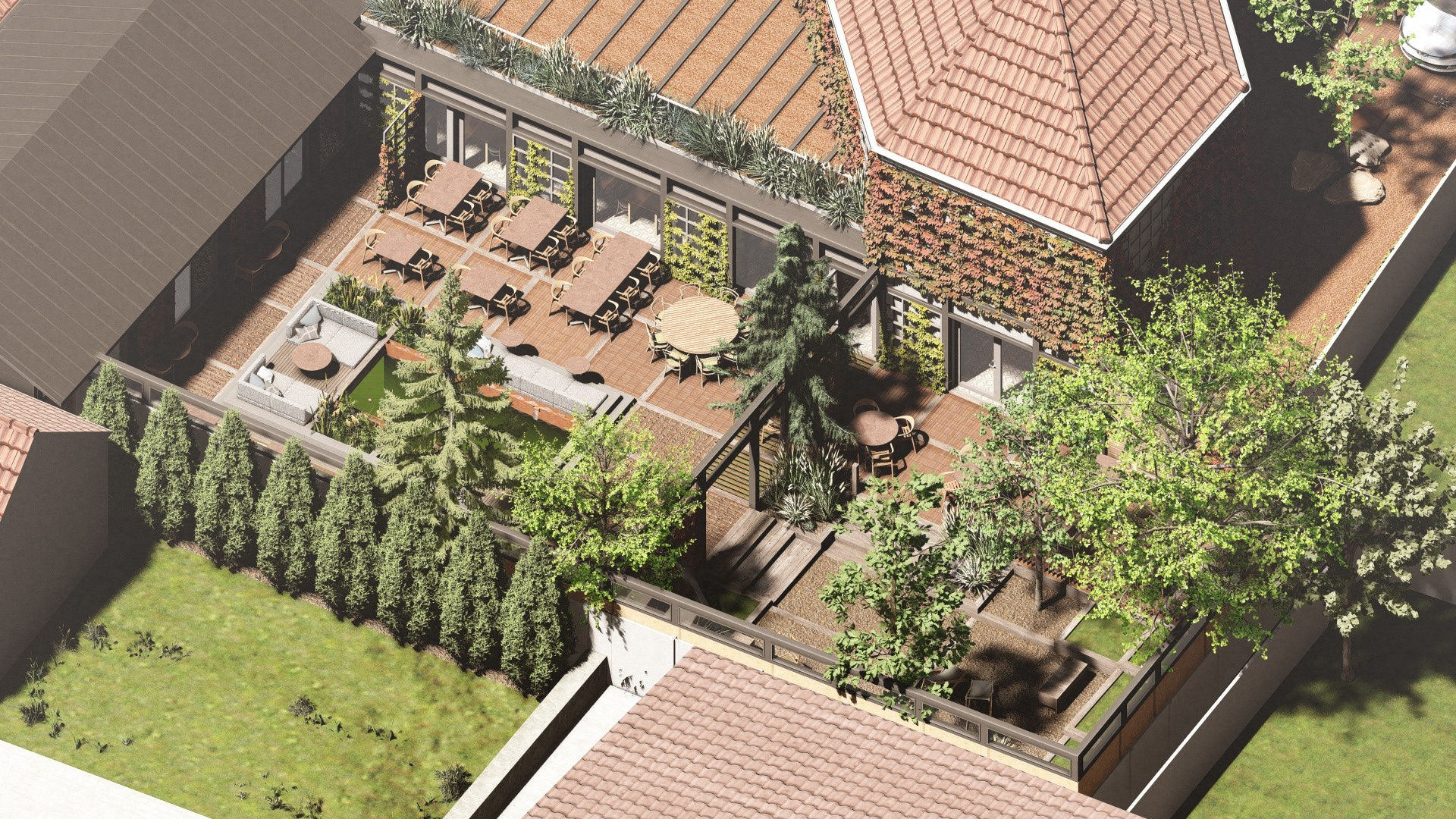 kompletní architektonický návrh rekonstrukce exteriéru včetně úprav areálu a jeho okolí